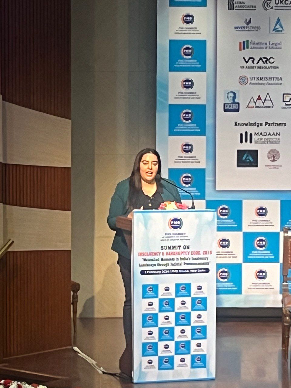 Manisha Chaudhary, Co-Chair of the NCLT & IBC Committee at PHDCCI, was invited as a distinguished speaker at the National Summit on Insolvency & Bankruptcy Code and Awards.