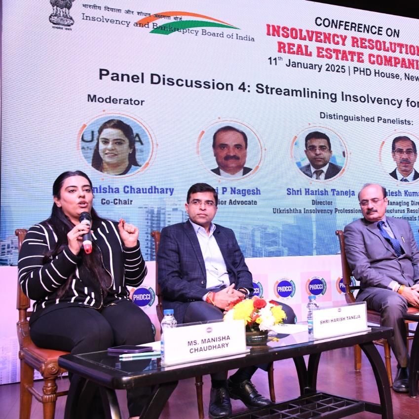 Manisha Chaudhary, Co-Chair of the NCLT & IBC Committee, PHDCCI served as the moderator for the panel discussion on Streamlining Insolvency for Real Estate at the Conference on the Insolvency Resolution of Real Estate Companies.